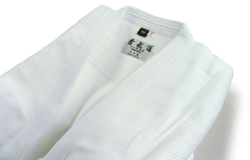二重刺の晒し高級合気道衣です。この高級合気道衣には特殊防縮加工を施してあるので、お洗濯後の収縮がほとんとございません。独自裁断・縫製方法により背継ぎ仕立てに近い前合わせの深さで着易さ抜群の合気道衣です。やわらかな生地で抜群の強度と耐久性を誇ります。お手ごろな価格としっかりとした作りこみ仕立てですのできっとお気に入りの一着になることでしょう。刺繍ネームを御希望の方は、別途御注文をお願い致します。素材: 綿100% 色:晒(ホワイト) 背継:無し